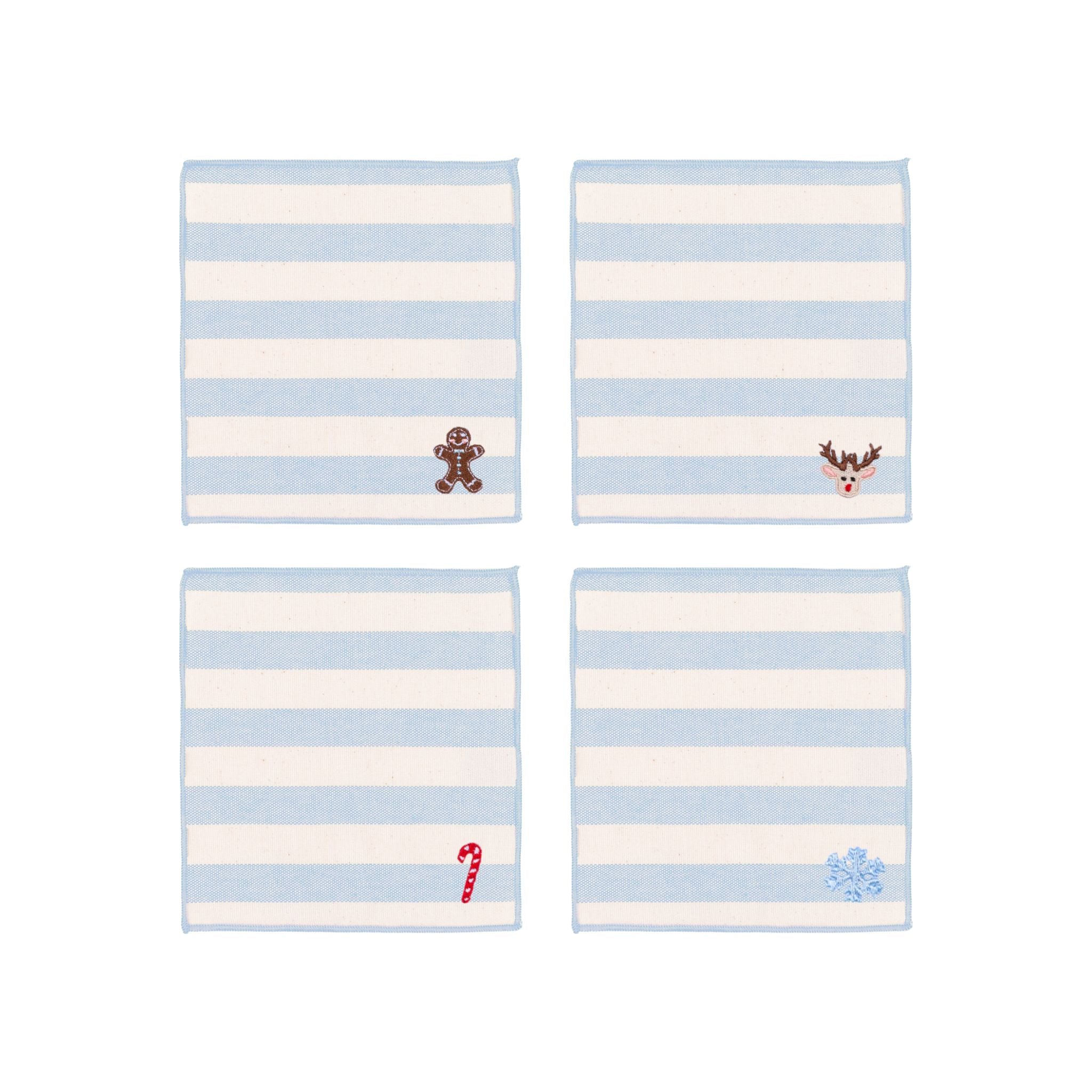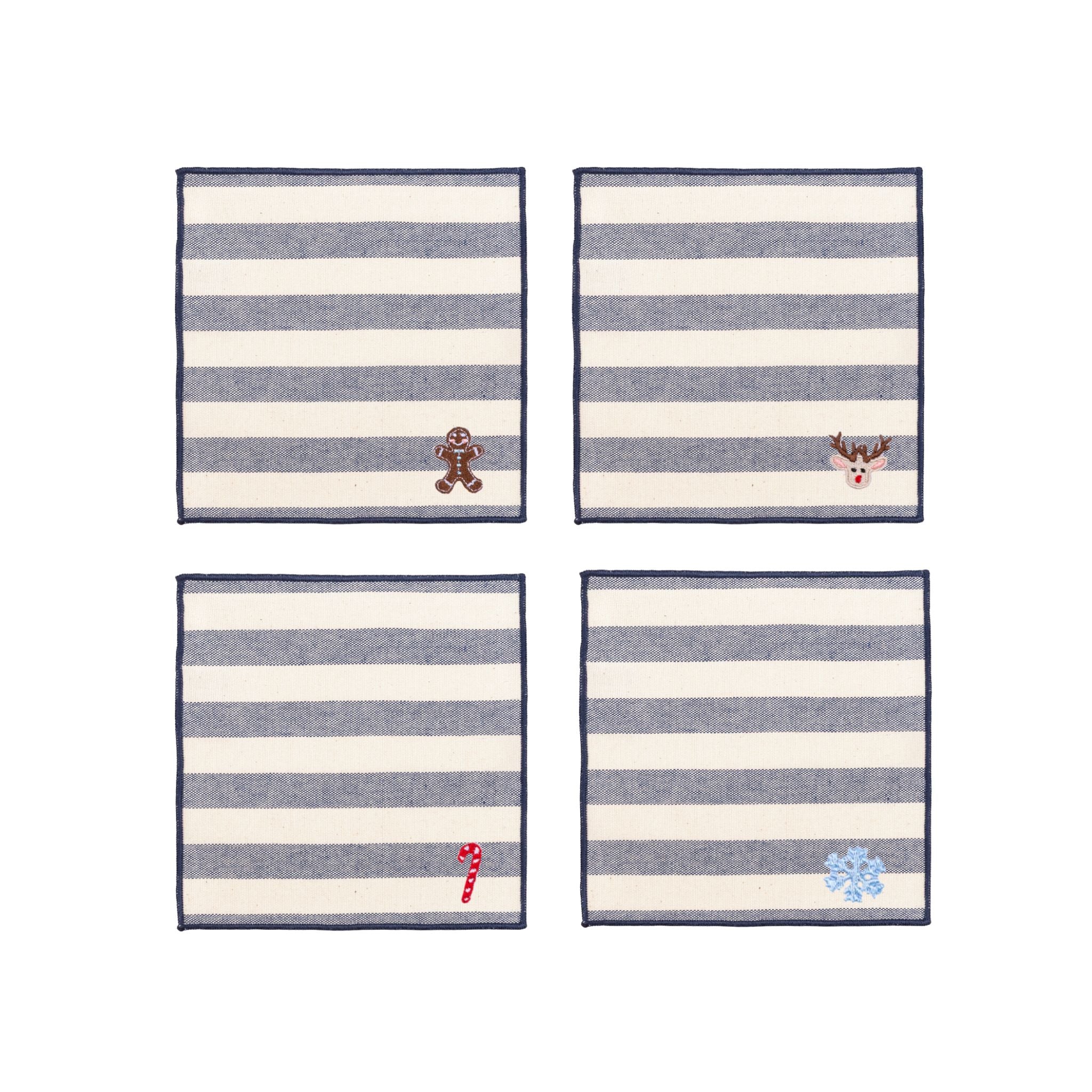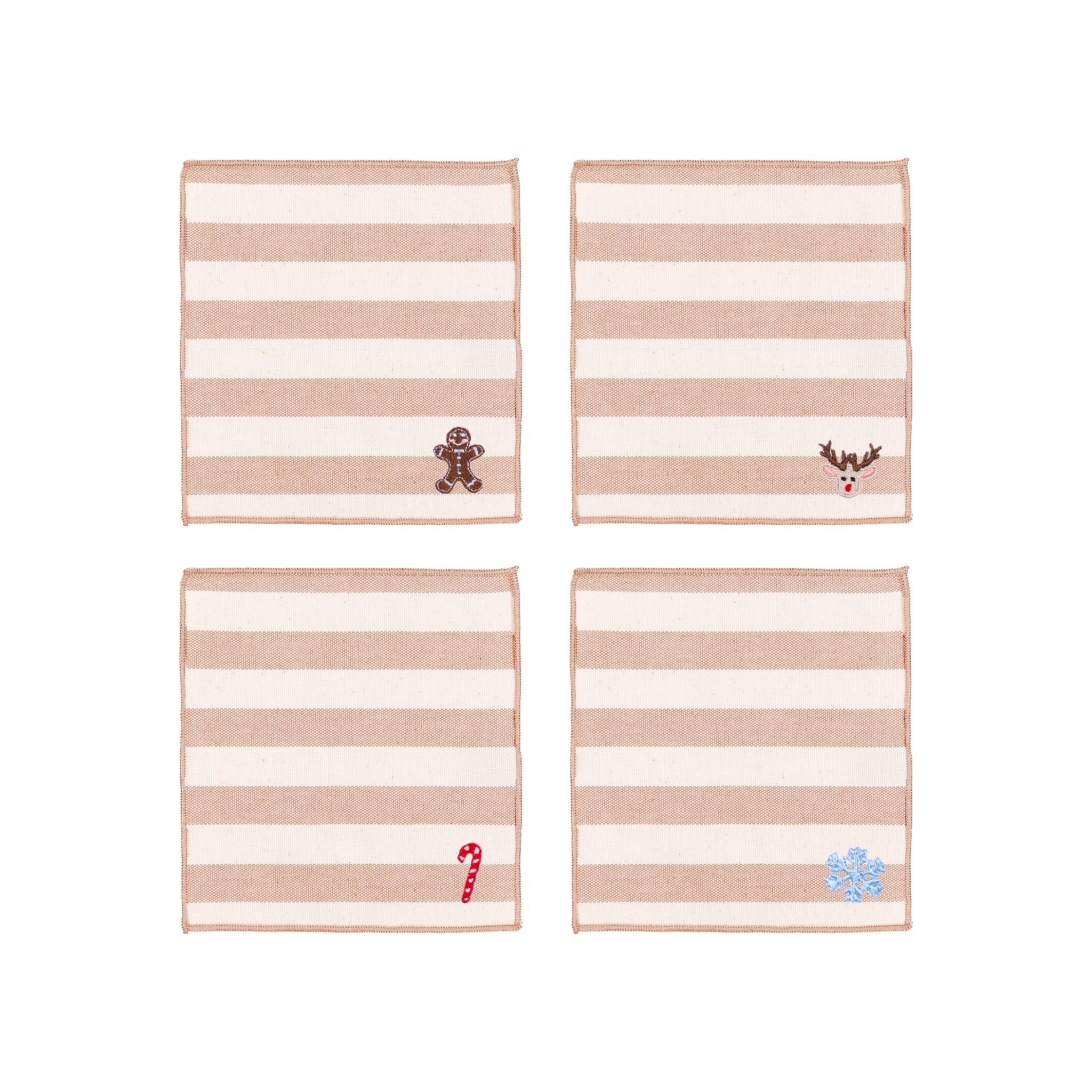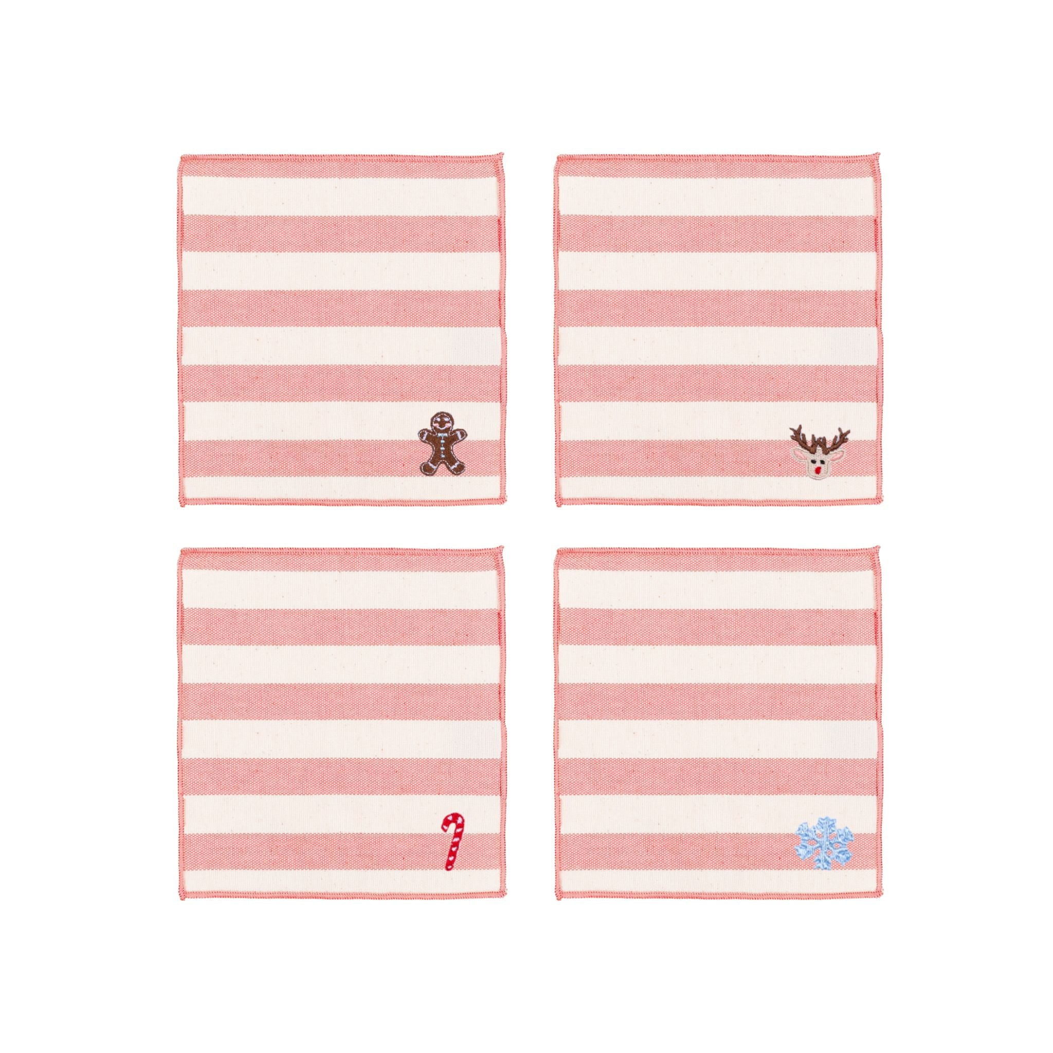 These napkins, cocktail napkins and placemats include 4 designs - a candy cane, a gingerbread man, a snowflake and a reindeer - inspired by the magic, sweetness and cheer of Christmas celebrations.